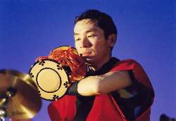 ○きらら 太鼓、チャンチキ、横笛の軽快なリズムに乗って登場します。 ○一番ばやしのテーマ 横笛・様々な太鼓が、元気よく登場します。 ○From East Land 古曲(さくら)等のメドレーを取り入れ、シンプルな構成の中に日本文化の色合いと、横笛の魅力を込めた曲です。 ○津軽 津軽三味線の力強い曲弾きと、雪国津軽に思いをはせた独自の旋律 ○おに 法螺貝の音、ドラの音、嵐を呼ぶかのような能管の音色。登場する鬼の気迫が会場を揺さぶります。 ○まつり 手拍子、足拍子でリズム合戦に参加して下さい。曲にのせて、様々な楽器の紹介もします。 ○体験コーナー 太鼓は誰でもできる楽器です。リズム感やセンスは後回し、僕達と一緒に挑戦してみませんか?簡単なフレーズをお教えします。 ○一番囃子 切れ味のいいビートと体全体で打ち込む気合い、我々のアレンジも加えました。威勢のいい江戸前の太鼓フィナーレです。 |